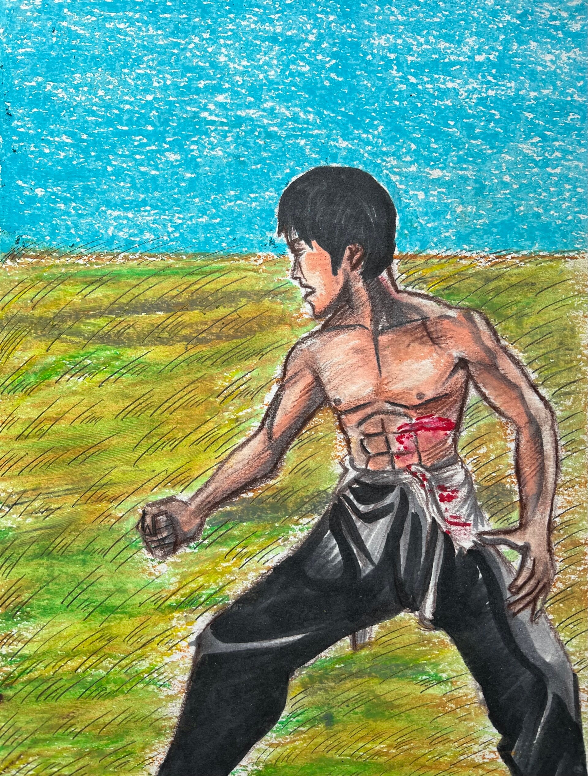 2(9x12) BRUCE LEE VS THE BIG BOSS ORIGINAL MIXED MEDIA DRAWING